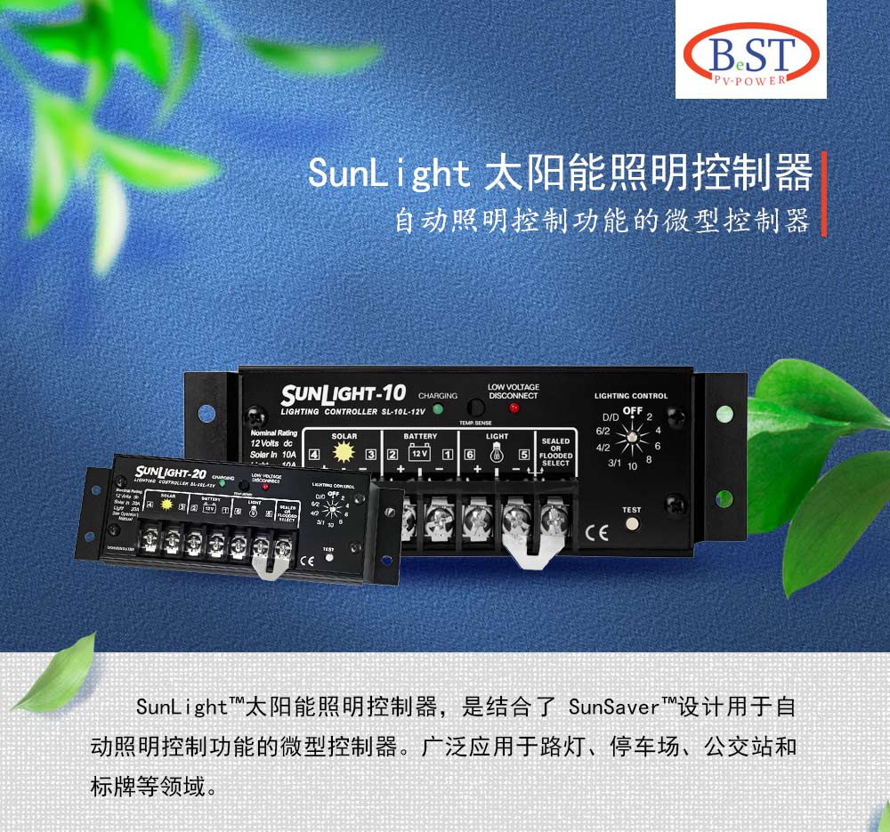 SunLight?太陽(yáng)能照明控制器,是結(jié)合了SunSaver?設(shè)計(jì)用于自動(dòng)照明控制功能的微型控制器。廣泛應(yīng)用于路燈、停車(chē)場(chǎng)、公交站和標(biāo)牌等領(lǐng)域。
